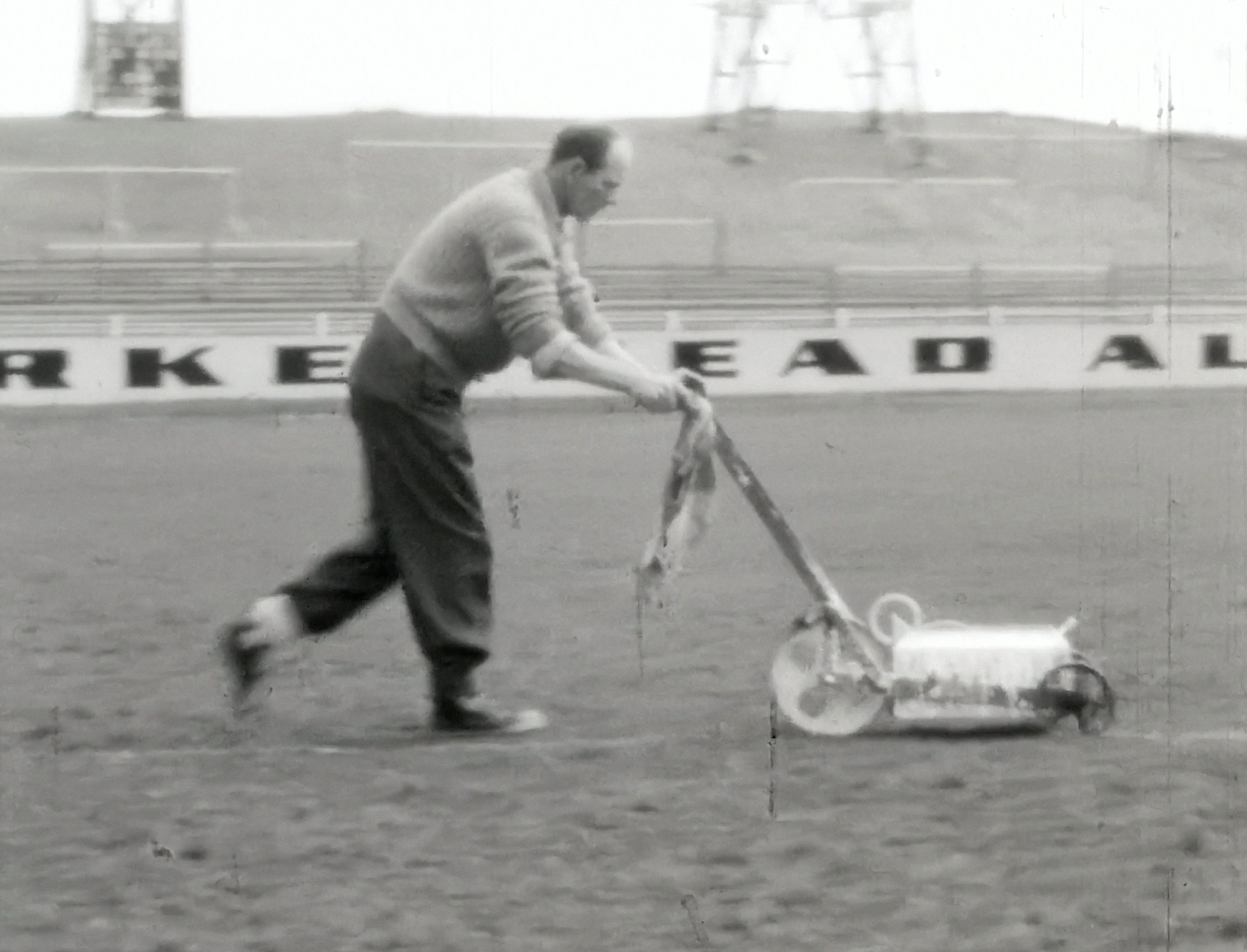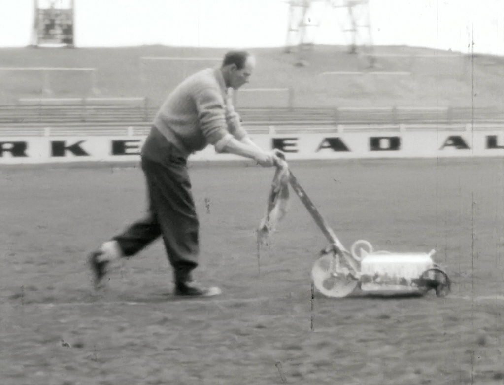 The film opens with footage of the pitch being marked out before moving to the outside of the ground. There are views of the back of the stand as well as the floodlights which were still a novelty as they had only been in place for three years.