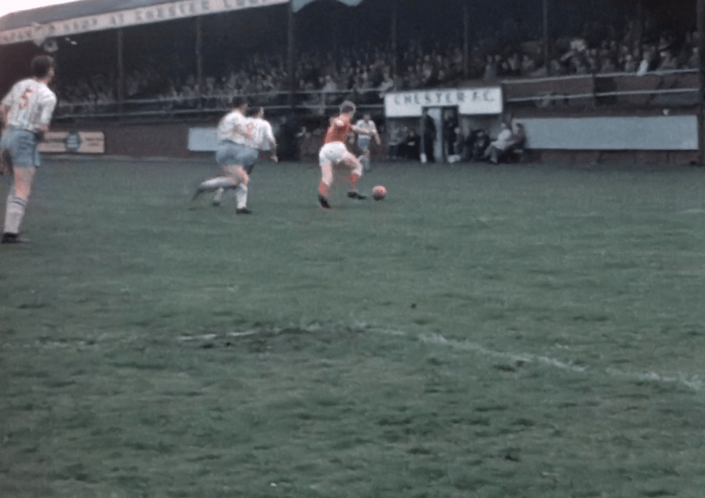 In May 1963 two students, Tom Carter and Rod Underwood, were given the task of producing a film as part of their teacher training course. As a last minute decision they bought a cheap cine camera and went down to the Sealand Road ground to film both inside and outside the ground. In addition they recorded a training session on the Annexe before ending with action from an evening game against Chesterfield.