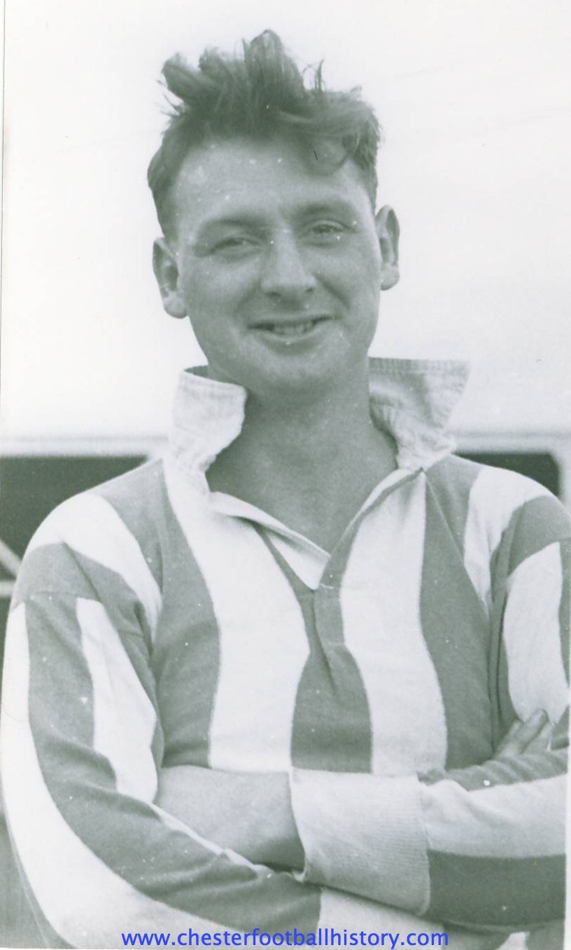 Eric was born in 1922 and signed for Chester after being spotted by manager Frank Brown as a 17 year old playing in local football for Hoole Alex. During the war he served in India and Burma and made his full debut for his home-town club in the first post-war fixture at York City in August 1946. Over the next 11 years Eric played 363 league games for Chester placing him fourth in the list of the club’s Football League appearances. In recognition of his service he was awarded a benefit game against Liverpool in 1952.