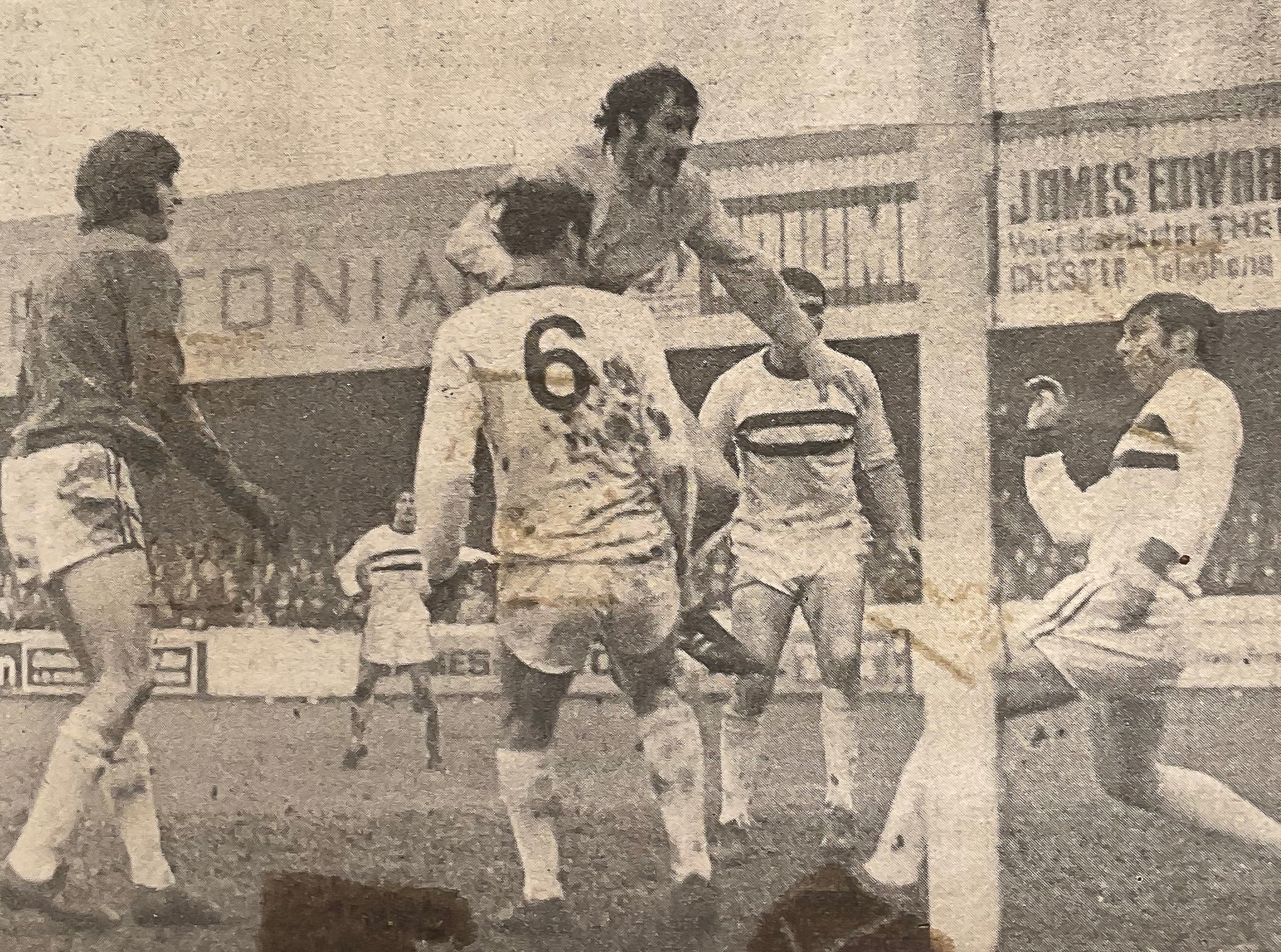 In July 1975 Ken Roberts brought Barney to Sealand Road in order to bolster the attacking options following promotion to Division Three. Chester paid a reported £25,000 for the Salford born player and Roberts saw him as a strong and quick striker who could cause defences problems. After making his debut as a substitute, in a League Cup tie at Wrexham, Barney made his first full start in Chester’s opening Division Three home fixture against Southend United. Although he was on target with a 25 yard effort this was as good as it got and his only other goal for the club came in an 8-1 thrashing of Kidderminster in the Welsh Cup. Four days after the Southend game Barney was substituted in the return leg of the League Cup tie against Wrexham and reacted angrily by throwing his shirt to the ground and storming into the dressing room. Although he apologised for the gesture he was disciplined by the club and thenceforth found it difficult to make an impact.
