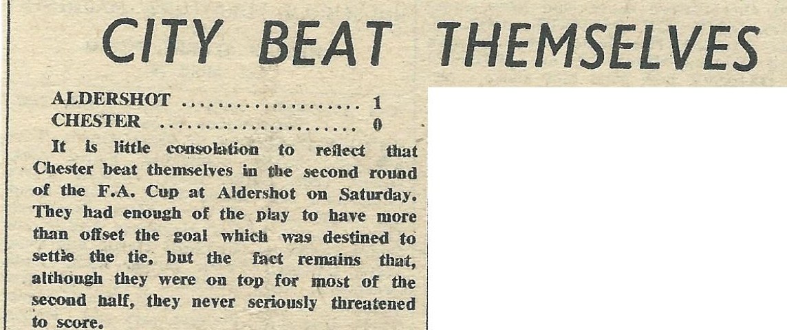Astonishingly the 1st Round elimination was the first time that Chester had been defeated at this stage of the competition since a defeat to Lincoln City in 1890.
