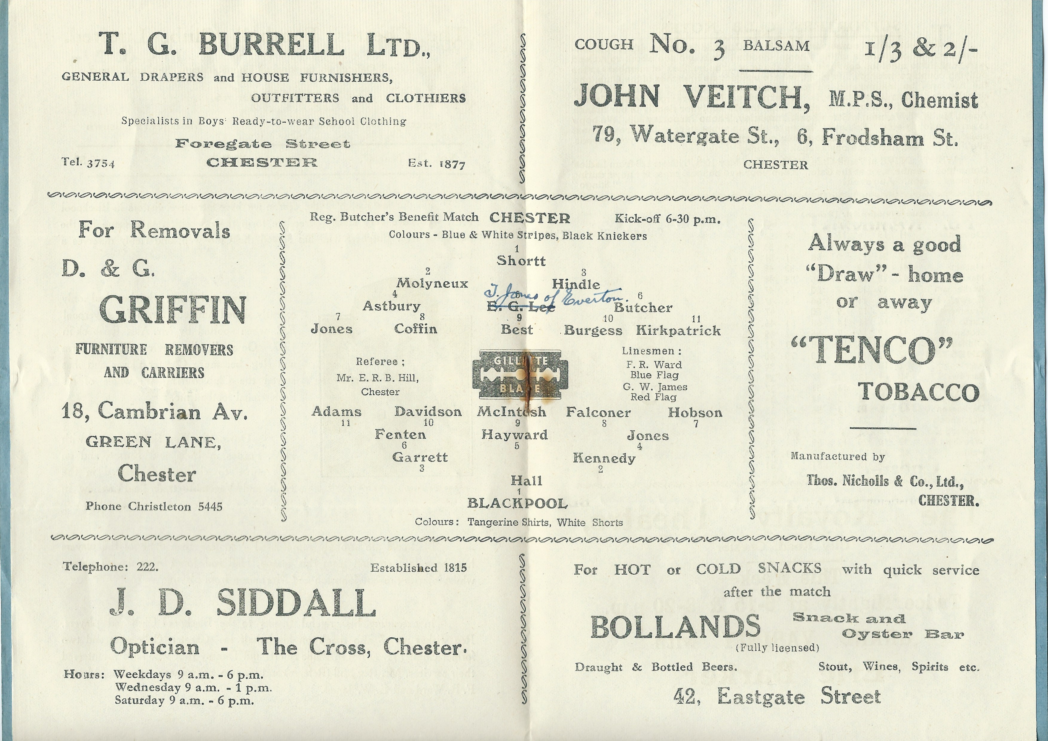 Chester – Threadgold, Molyneux, Hindle, Astbury, Lee, Greenwood, Foulkes, Hankinson, Coffin, Burgess, Devonshire