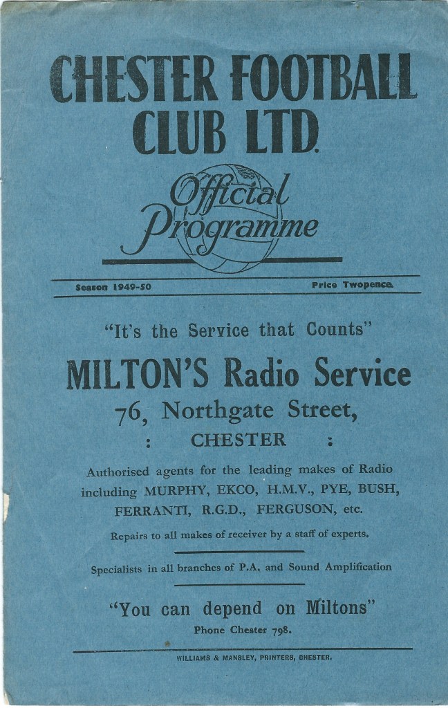 Hero of the day Bill Pearson only played 12 league games for Chester before a persistent knee injury forcing him into retirement from the professional game at the end of the 1949/50 season. The Irishman continued to play amateur football in Yorkshire and died in 2009 after a long illness.