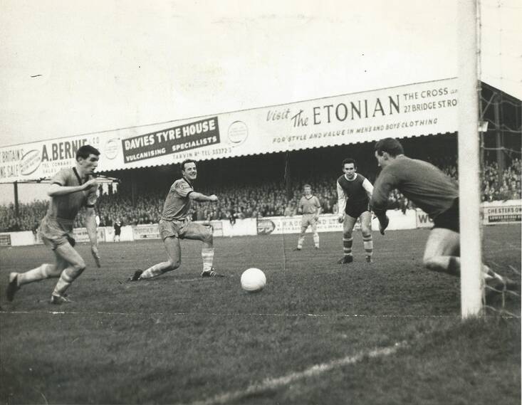 Elfed Morris and Gary Talbot in action during the 3-2 FA Cup win over Blyth Spartans in November 1963 – Chester Chronicle