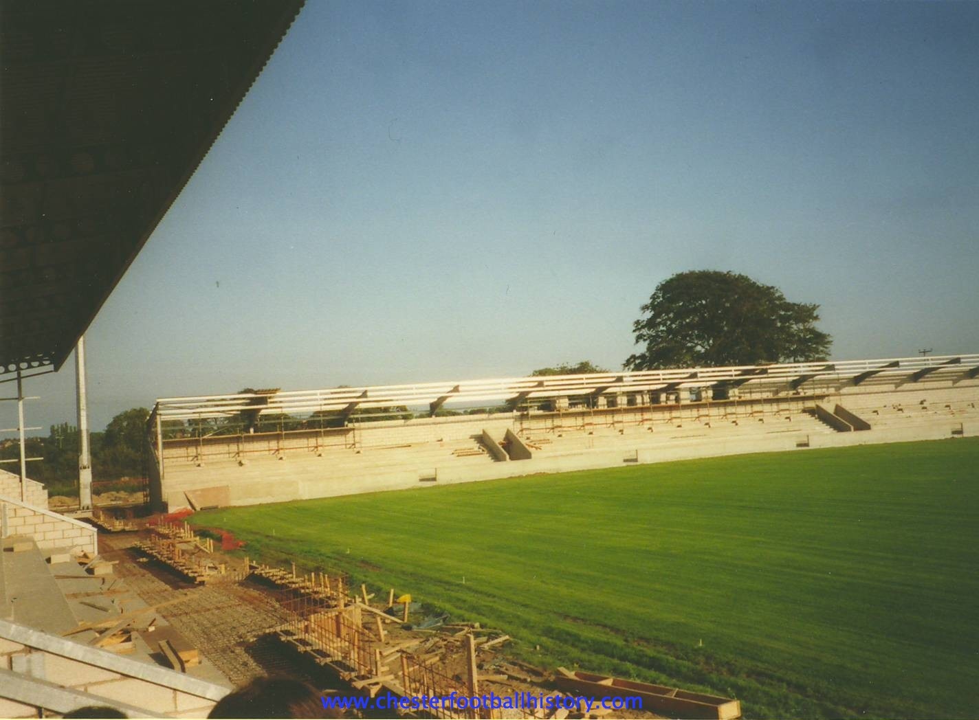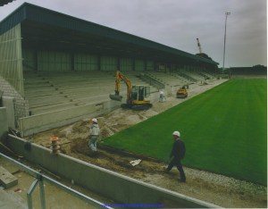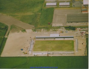 In the event the surrounding walls and popular side cover were both completed during the summer although the cover did not extend the full length of the pitch. It is this work that resulted in the plaque being placed on the new wall at the Sealand Road End.